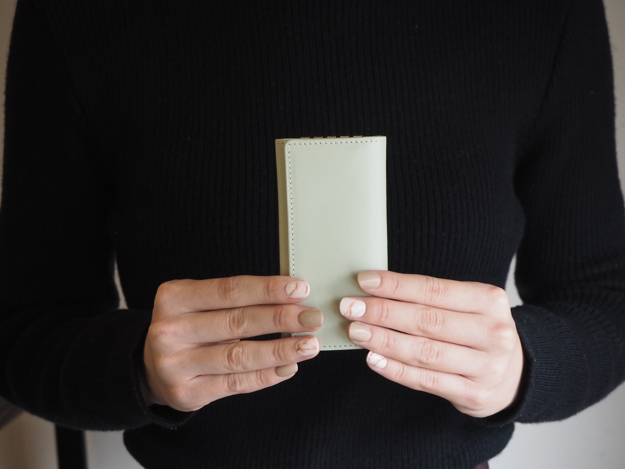 ホック開閉式とラウンドファスナー開閉式です。